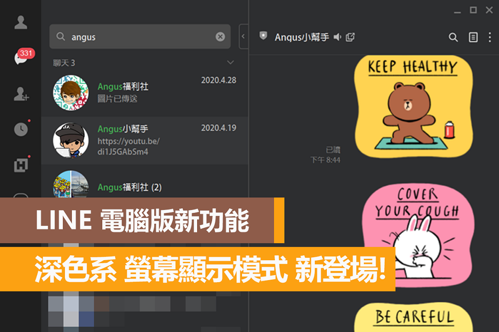 ▼ 套用「深色」主題後,就可以看到 LINE 電腦版都轉變成深色底,在晚上使用起來就是會比較舒服,不會長時間使用讓眼睛太過疲勞哦。