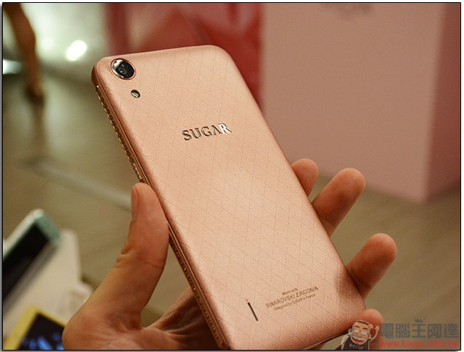 7 月 15 日即將在台推出兩款機型:Sugar S 與 Sugar C6。Sugar S 的厚度只有 5.1mm ,重量也僅有 98g,是目前全球最輕最薄的 4G 手機。有黑與粉兩色可選擇,在側邊電源與音量按鍵上共鑲嵌 16 顆施華洛世奇寶石。硬體規格上,Sugar S 擁有 4.8 吋顯示器,搭載高通 S410 四核心處理器,1,300 萬畫素主鏡頭與 800 萬畫素自拍鏡頭,售價新台幣 9,490 元。