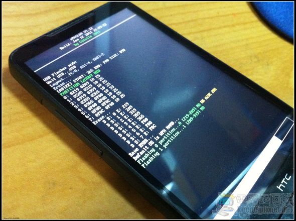 此時您的HD2應該是這樣的畫面,刷完後手機會自動重啟: