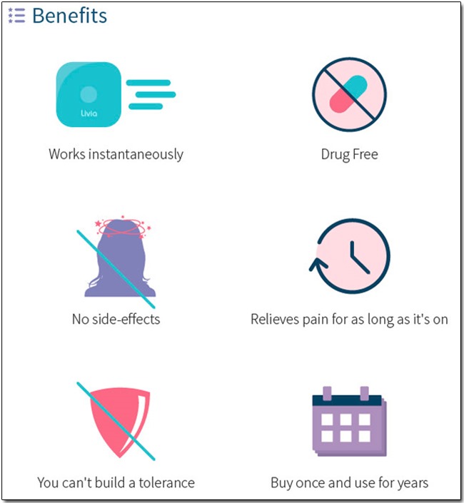 Livia 主要運用「閘門控制學說」而發展出的技術,用脈衝去使神經呈現忙碌狀態,藉以阻止疼痛信號通過神經傳導至腦部,幾乎起到瞬效的作用,整個超神的!
