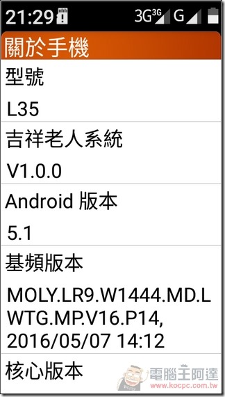 簡易模式的設定介面,做的蠻簡單易懂的,甚至還有「防騙功能」的選項(聯絡人以外的電話全部BAN掉)。INHON L35 搭載 Android 5.1 版 OS,應該不太可能會升到 Android 6.0: