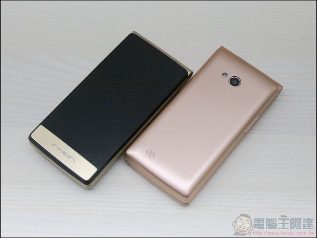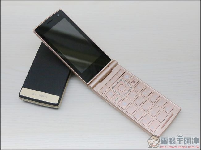INHON L35 的外觀與七八年前流行過的折疊機相同,平常時是對折闔上待機使用與收納攜帶的。INHON L35 共有黑色與玫瑰金兩種配色: