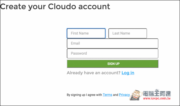 使用前你必須要有 Cloudo 的帳戶,沒有的朋友就點選下方的「Create Accoun」新申請