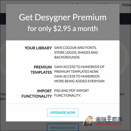 付費方式是升級成 Premium 帳號,每個月 2.95 美金,約新台幣 96 元,也不貴就是了,可獲得更多的樣板以及附加功能。