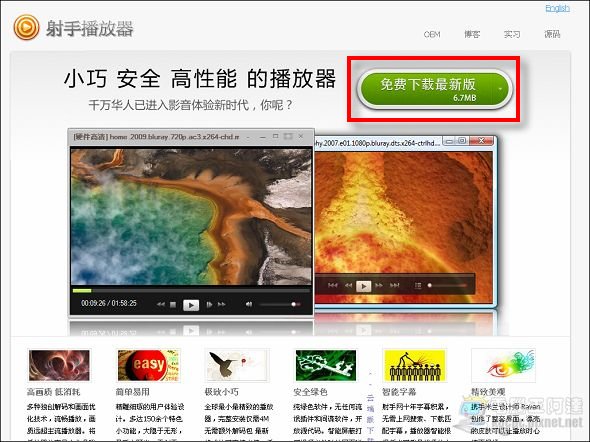 首先去http://www.splayer.org/下載「射手影音播放器」,這個軟體是對岸蠻有名的「射手網」發佈的: