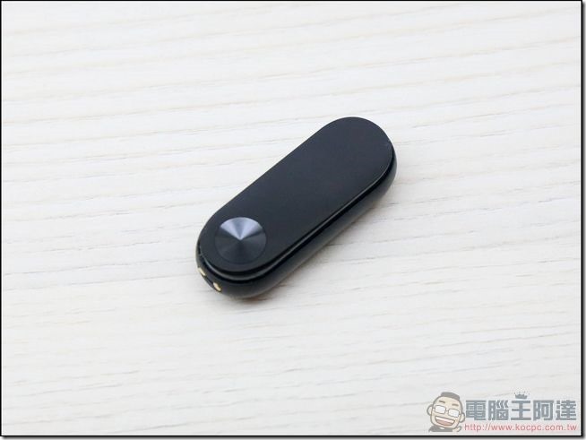 小米手環2本體,與一代原本的金屬表面不同的是二代是一整片的黑色OLED面板與一顆觸控按鈕:
