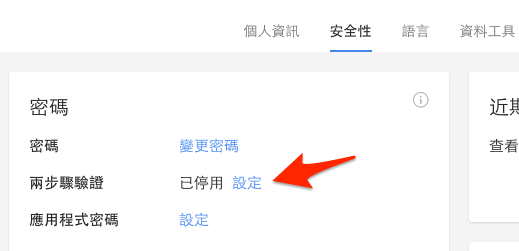 1. 首先,請進入『這個頁面』,然後找到『密碼』下的『兩步驟驗證』,點右邊的『設定』連結。