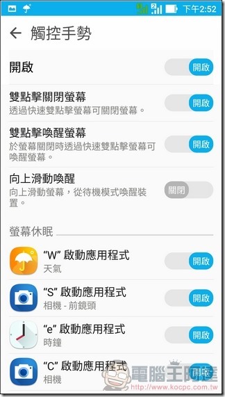 ASUS ZenFone3 也支援觸控手勢與動作手勢功能,可在螢幕關閉的待機狀態下雙點螢幕來開啟/關閉畫面,也可以休眠時以手勢直接喚醒並啟動指定程式: