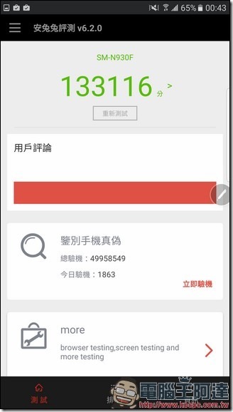 安兔兔的跑分大約是13萬分,但是實際跑分時,手機已經經過眾多現場媒體與部落客把玩,處於運作的狀態,若照一般測試標準來進行跑分測試的話,數字應該會更高: