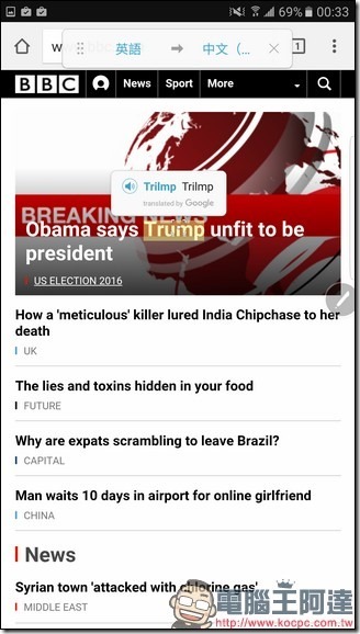 ↑只要把S Pen對準文字,不用點選就可以直接進行翻譯