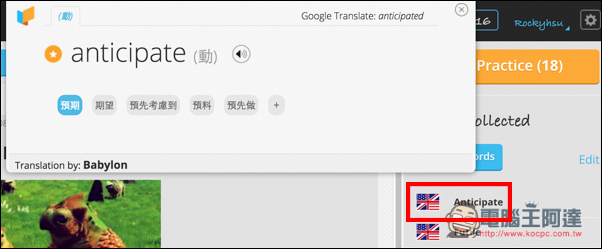 而上方也會顯示中文的解釋