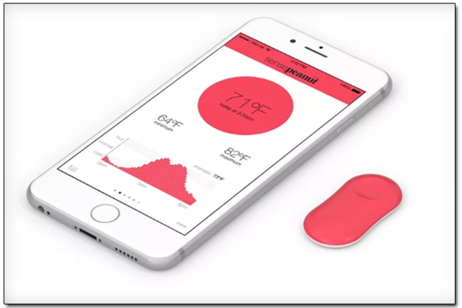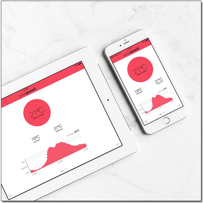 ThermoPeanut 長得像是一顆 2D 花生(還沒剝開那種),可黏貼在需要溫控的地方,透過藍牙連接將目前的溫度資訊傳送到手機上可支援 Android 和 iOS 的專屬應用程式中,可感測攝氏零下 5 度到 60 度,告知使用者此時該適時調降或升高溫度。