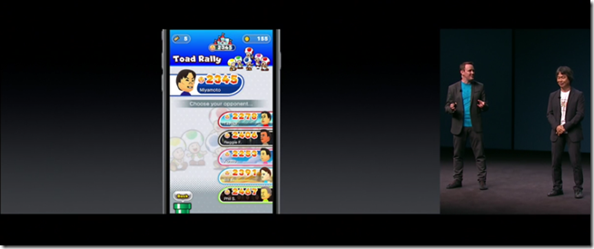 在今年的蘋果新品發表會現場,沒想到在蘋果執行長庫克介紹之後,登場的竟然是日本老牌遊戲廠商任天堂的知名遊戲「馬利歐」登場,引起現場一陣歡呼。而且知名製作人宮本茂也登場介紹,表示他帶來了新的馬利歐行動遊戲「Super Mario Run」。
