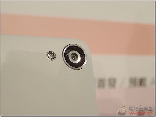 Nexus 9 背面特寫,主鏡頭使用的是 800萬畫素 BSI 背照式自動對焦鏡頭、F2.4光圈、可錄製1080p Full HD影片,同時也配置了平板少見的補光燈: