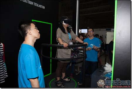 接下來要介紹的,自然是來自台灣的Future Town,就如同先前展前記者會所介紹的,他們這次在東京電玩展中,帶來了三種5D totalmotion動感平台、「Whiteout: Ski VR」、「Infinity Rider: Motorbike VR」、「Wave Breaker: Surf VR」、「Stallion Adventures: Horse Riding VR」等四款遊戲,在現場可以說是吸引不少人的目光。