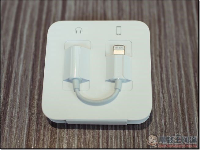 把耳機翻到背面,還會看到 Apple 原廠贈送的 LIGHTNING 轉 3.5mm 接頭,最大的影響就是不能邊充電邊聽歌(講實話,這樣的使用情境也真的不多,但就真的不方便)。雖然 Apple 官方是嫌 3.5mm 耳機孔太古老,而且為了防水與機構設計等因素,但我相信主要的考量點還是 Apple 想要推廣 LIGHTNING 介面,反正我改了你不買單也不行:
