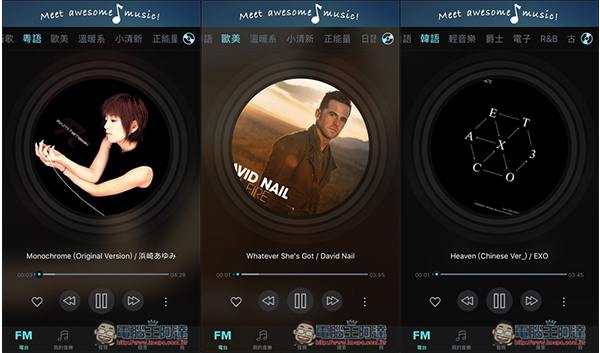 除了筆者之前曾介紹過 MixerBox 3 與 SOUNDS. 音樂 App,這篇還再推薦大家另一款也非常好用的「手機音樂電台 Music FM」,不過只有 iOS 版。相較於前兩款,手機音樂電台內建的音樂資料庫可說相當龐大,從華語、粵語、日語、韓語、一直到西洋歐美歌單都有,也提供單曲搜尋播放以及歌詞功能,重點還完全免費,對於愛聽音樂的人很值得下載來試試!