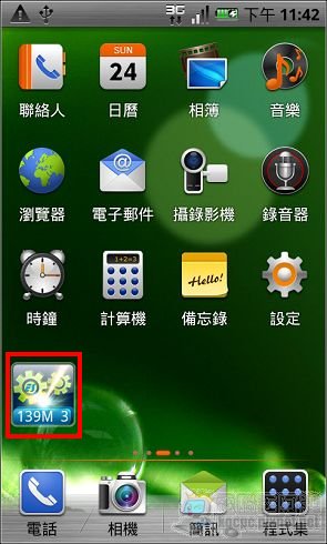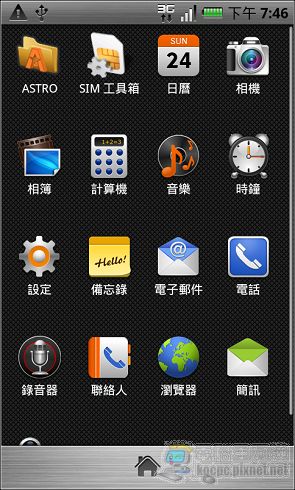 接下來看看「altek A14 LEO」的內在,原則上主畫面跟程式集內容都跟一般Android手機差不多,但就是缺了GMAIL、YOUTUBE、Android Market與地圖等Google服務: