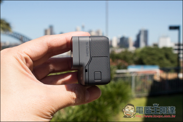 把外殼也取掉後,Hero 5 機身真的很小,大概跟四隻手指頭差不多,但有一定重量,所以不用擔心拿在手上會不會很容易滑掉。