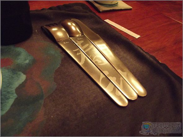 餐具也很酷,像這三個餐具排起來正面是「食藝」: