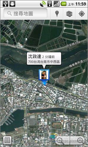 第二個是各式各樣的圖層顯示,共有路況、衛星圖、地形、Buzz與Google定位等等,其中Buzz在台灣鮮少有人使用所以這兩個筆者不另作介紹: