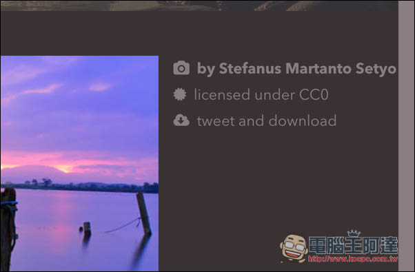 每張照片右邊都會註明是誰拍攝、授權怎麼樣(都是 CC0),以及 Download 功能鍵