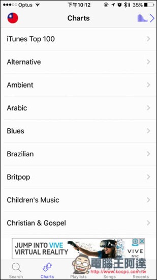 開啟 App 後,就會看到 Free Music with Mp3 Player 幫我們整理好的各種曲風,還包含 iTunes Top 100