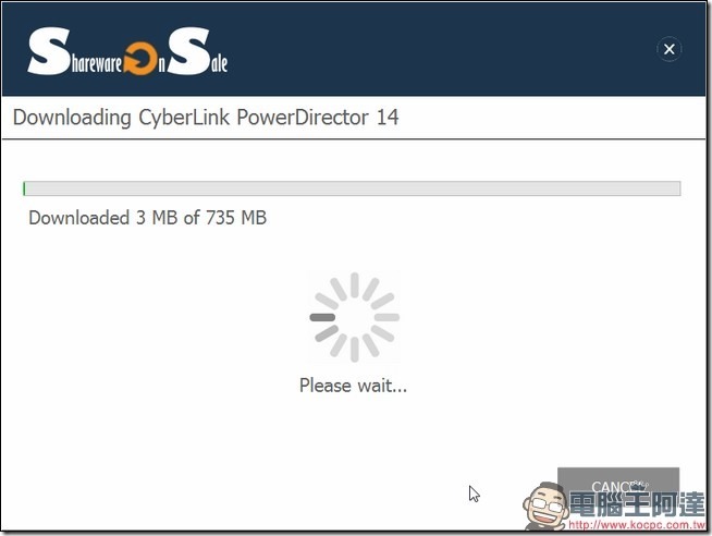 Step04:前導下載器下載成功後,就直接執行他吧,這次是採用SharewareOnSale的下載器,一定要透過這個才能下載威力導演14 LE的安裝程式,程式打開後就點選右下角的START吧