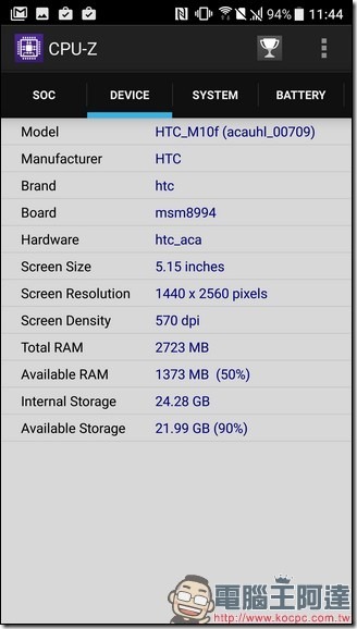 在硬體數據部分,HTC 10 evo 使用 S810 處理器,32GB ROM、3GB RAM,安兔兔跑分的結果為 75549 分。