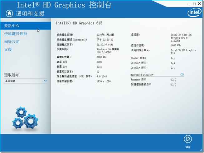 內建顯示Intel HD Graphics 615,繪圖基礎時脈為 300MHz,最大可至 1050MHz: