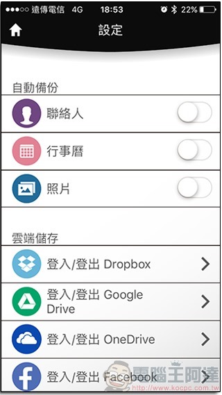 除了之前講的手動備份外,在設定裡面更可勾選定時自動備份你的聯絡人、行事曆、照片,就算手機不小心遺失也能保有最重要的三大資料,還能管理你的雲端儲存登入帳號呢!