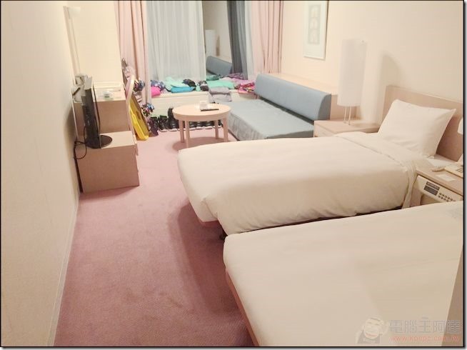 阿達這次住的三人房(沙發拉出來是張單人床):