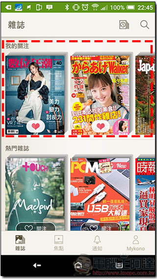 點擊感興趣的雜誌上的愛心,就能將雜誌加入關注清單,當有新期數上架時你就可以獲得最新的即時通知,絕不錯漏任何出刊動態。