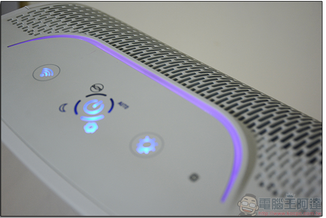 透過觸控板,你可以開啟/關閉WiFi、切換模式與調整燈光,就算沒有將清淨機聯網也能手動操作,非常適合對於手機操作苦手的長輩或小朋友。在顯示上均以不同顏色的燈號顯示,例如 WiFi 燈會依照目前聯網狀態而改變,開關機狀態與使用狀態等,一目瞭然。