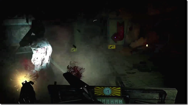 由於遊戲本身背景就設定的非常的詭異,很多時候又必須仰賴手上的槍或者是背景的閃電做照明,製作團隊很會的就是在每個閃電之間快速的做切換,這樣在玩家的眼中看起來就是「突然變了」,有很多時候背景又設定的特別討厭的真實,在本來覺得平凡無奇的地方,突然跑出料想不到的東西,原本安靜的裝飾突然發出恐怖的噪音,而又由於是配戴 PS VR 來進行遊戲的關係,整體的視覺都被佔據著,在恐怖驚悚程度沒辦法馬上抽離遊戲世界,睜眼閉眼都是被綁在遊戲世界中,就這個層面而言,可以說是遠超過過去的射擊遊戲,膽子太小的人誠摯不建議嘗試。