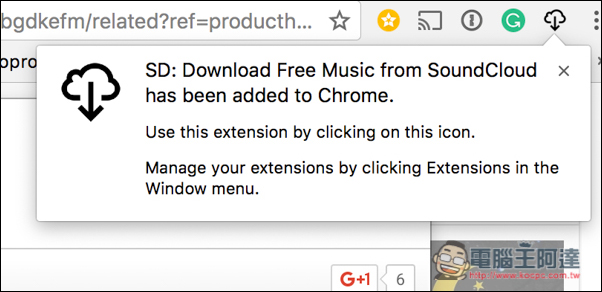 這時如果你想要下載這首音樂的話,必須先安裝這套 SoundDown 的擴充外掛(當然,前提時你使用的瀏覽器是 Chrome),點選右上方的 ”+ 加到 Chrome 功能“。