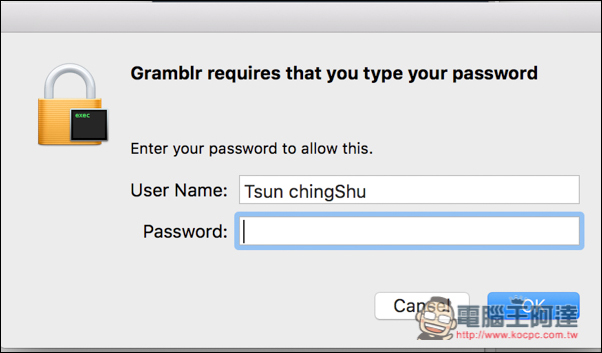 不過因為是從網路上下載的,因此會跳出無法開啟的訊息,這時要進到系統設定中調整。(Windows 不用這麼麻煩,可以直接使用)