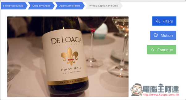 修改完後,於右側輸入照片描述,也可以在後面加上標籤 #wine 之類,不過這套不像 Instagram 官方會列出常用的標籤名稱,必須自己輸入完整名稱才行。