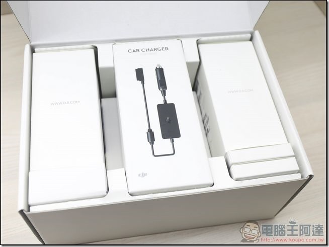 FLY MORE COMBO 所有配件包括了電池兩顆(3300*2)、車充(1800)、電池管家(1400)、電池轉行動電源轉換器(710)與兩組快拆摺疊螺旋槳(340*2),單買的價格為11190元: