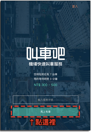 步驟一、按下「馬上有車」按鈕,然後選擇你入境的航廈別。
