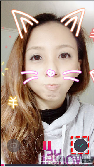 在這個畫面中,右上角功能區可以轉換前後鏡頭、開關美肌效果以及調整影像比例,你也可以點選右下角匯入舊影片來編輯,選好之後請點選左下角的「超萌表情」,選好後點選中間大大的桃紅色圓形就可以開始拍攝囉!