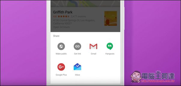 另外也加強了分享功能,只要點選專屬功能鍵,使用者就能快速透過網址連結、Email、郵件等等,把這份地點清單傳給朋友,這點相當不錯!