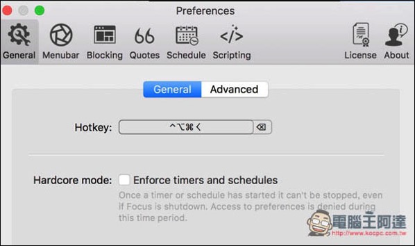 另外也內建快捷鍵功能,快速開啟 Focus 的倒數計時器。