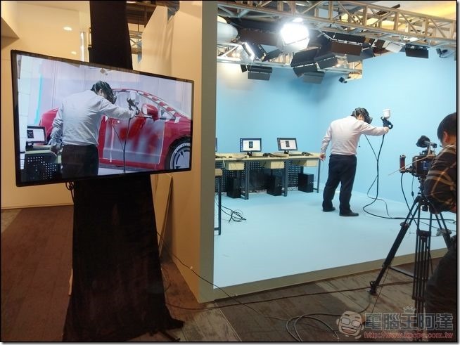 在中國 VR 娛樂的應用是以如火如荼的「進行式」在全國發展,光擁有這樣沈浸式體驗的 VR 遊樂場或網咖就超過一千間,剛好在會場一樓就有一間以 HTC VIVE 為主的 VR 俱樂部設施: