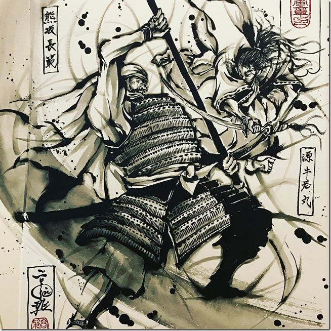 當然,日本知名武將、劍客的創作作品,在こうじょう雅之的創作歷史中也不會少見,像是知名的戰國武將織田信長、武田信玄、德川家康、真田幸村,知名的劍客宮本武藏、佐佐木小次郎、沖田總司,甚至是連弁慶,在他的水墨筆下都顯得霸氣萬分。