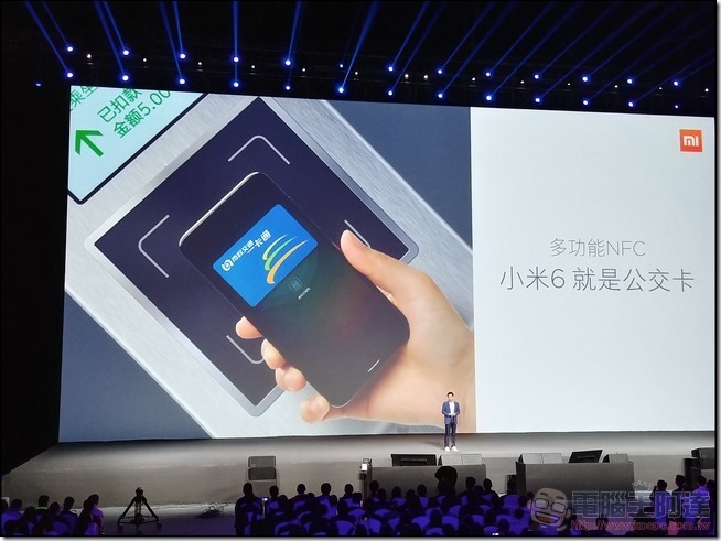 小米 6 也首次搭載立體聲喇叭,同時內建有 NFC 晶片,可以支援中國地區的各種交通卡,而且也有支援支付寶與微信的指紋支付: