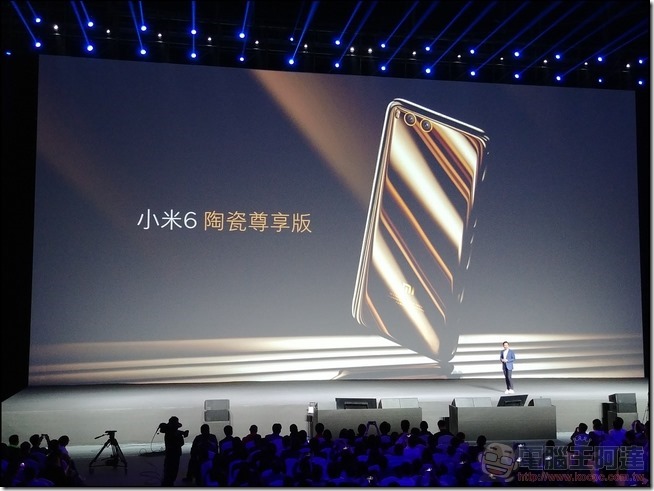 還有發表會即將結束前公布的「小米6 陶瓷尊享版」,採用陶瓷機身、鏡頭環區域採用18K金,記憶體為 6GB RAM、128GB ROM ,售價為 2999 人民幣(約新台幣 13244元):