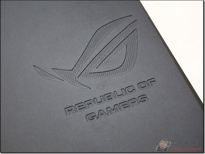 側板上貼有套裝電腦會宣告的各系統的銘牌以外,另一端還有刻有著號稱「敗家之眼」的 REPUBLIC OF GAMERS LOGO: