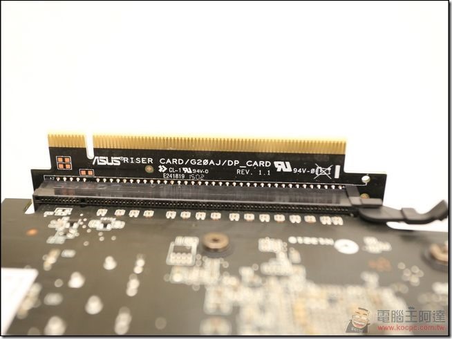由於 ASUS ROG G20BM 的顯卡安裝設計是採用橫躺式,需要透過 90 度的 PCI-E 轉版來進行轉接,所以您在安裝或是拆卸時也要特別注意,避免斷裂(這對玩家來說應該不是什麼問題):