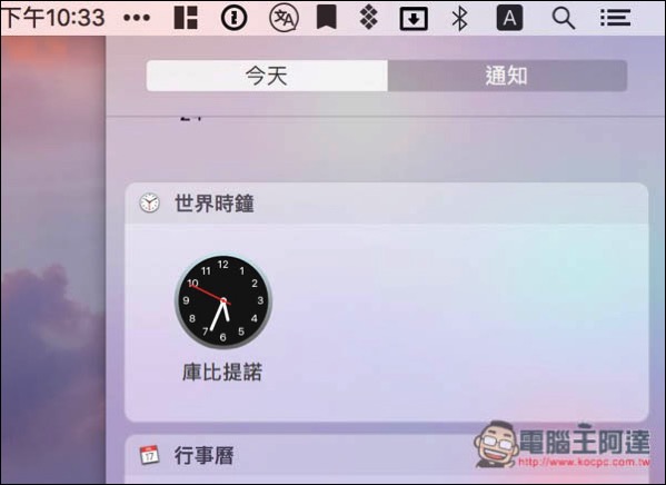 另外某些讀者可能會說,為什麼不用右側通知選單中的世界時鐘功能就好?因為筆者還是很不習慣打開右側的通知選單,打開時鐘反而比較直覺。